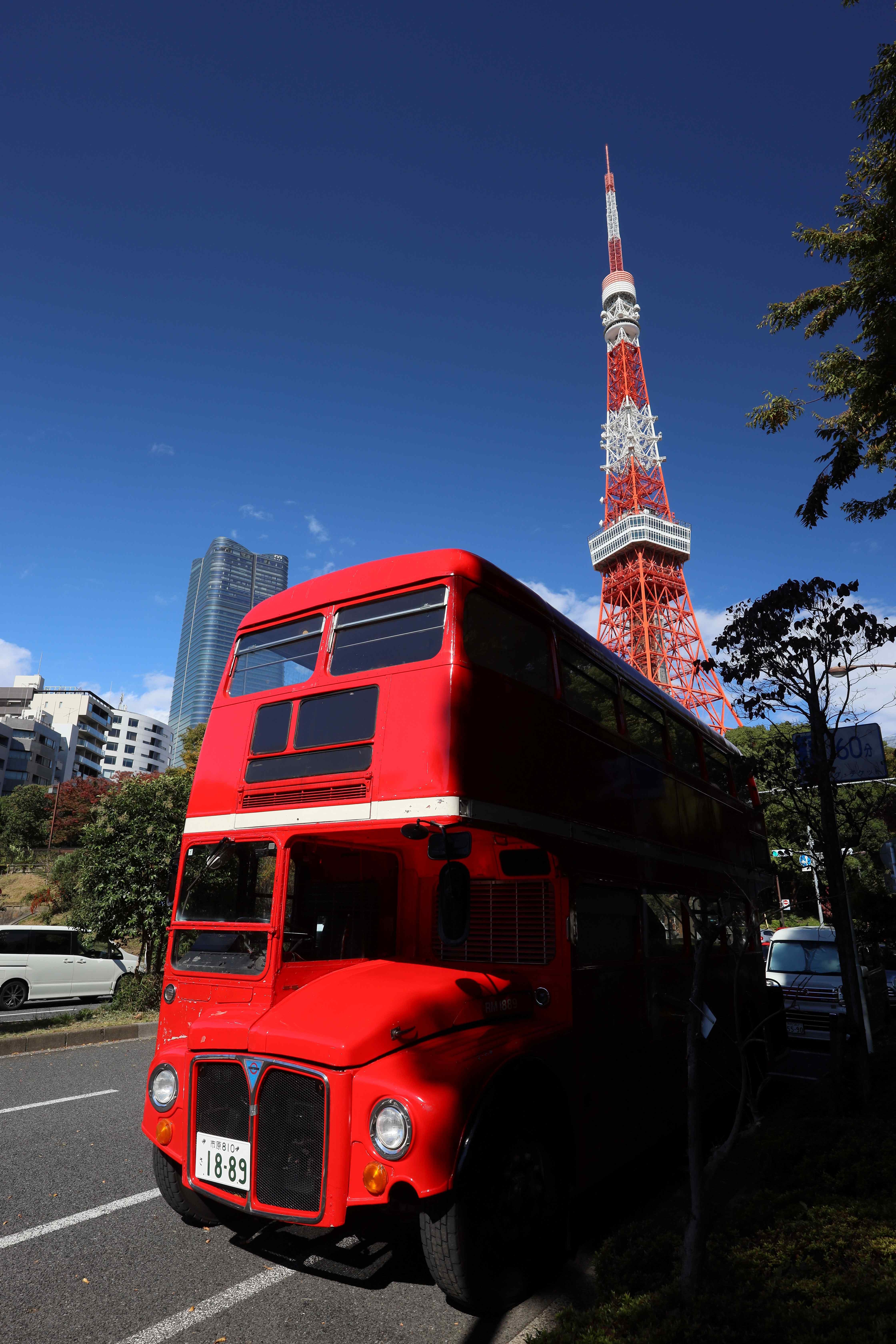 写真のタイトルは「ダブルデッカーと東京タワー」